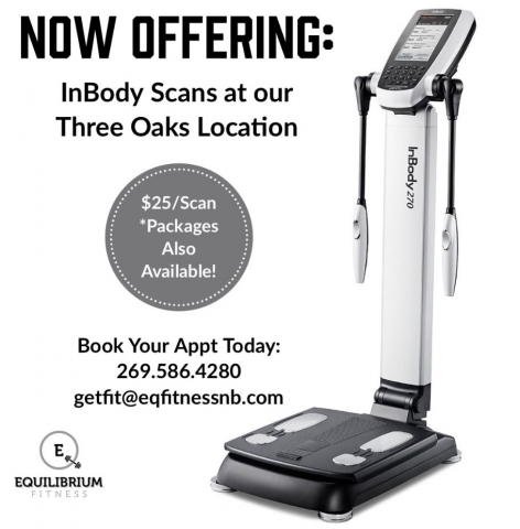 We have moved a majority of our Classes into our NEW Studio space next to our Gym in Three Oaks. Our Studio space offers over 2,000 sq feet, a private bathroom, water fountain, cubbies, merchandise available for purchase, and our InBody Scanner.
